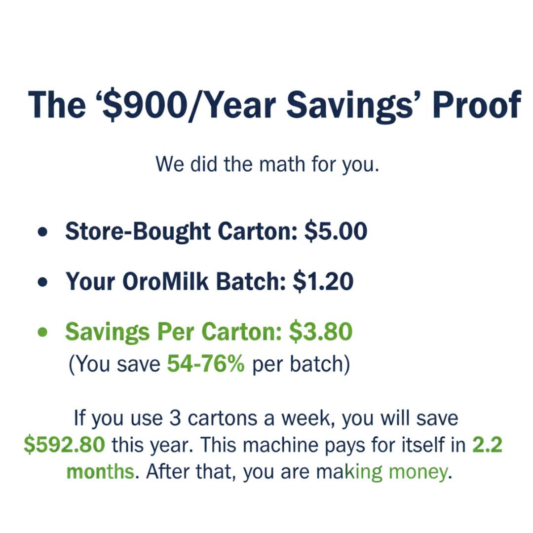 Result: OroMilk pays for itself in roughly 3-4 months. After that, you are essentially printing savings.