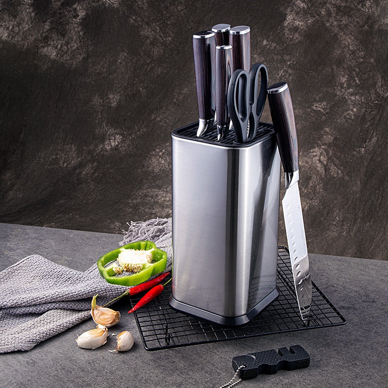 Forget bulky, traditional blocks that only fit specific knives. Our modern Universal Design features flexible rods that adapt to hold any knife securely. It’s compact, hygienic, and designed to clear your counter clutter.